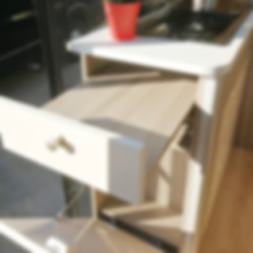 Die hochwertig verarbeitete Dometic Kocher-Spülkombination mit klappbarer Armatur und elektronischer Piezozündung läßt sich mit einer geteilten Glasplatte abdecken. Oberhalb des Küchenblocks befinden sich ein geräumiger Oberschrank. seitlich des Küchenblocks verbirgt sich eine Erweiterung der Arbeitsoberfläche mit über 40cm Auszug sowie ein großes Staufach für Ihre Vorräte. Die Schubladen mit Vollauszug und der große Apothekerschrank schaffen viel Platz für Ihren Reiseproviant.