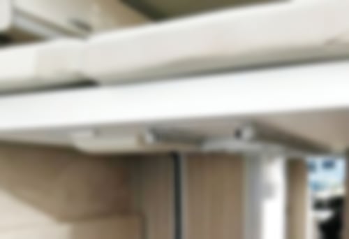 5-Sterne Schlafkomfort auf jeder Ebene mit unserer Premium-Matratze aus Kalt- und Visoschaum. Das optionale Zusatzbett ist die optimale Ergänzung zum Familien-Reisemobil wenn das Zelt für die Kleinen einmal nicht aufgebaut werden soll. Der besondere Clou ist, dass das Zusatzbett auch wenn es nicht genutzt wird, in der Position verbleiben kann und das elektrisch höhenverstellbare Bett trotzdem in der unteren Stellung voll nutzbar ist. Trotz der zweiten Schlafebene finden Sie im Mega Revolution 640 ausreichend Staufläche in den Oberschränken.