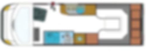 Beim Mega Lounge 640 wurde der Innenraum völlig neu durchdacht. Über der neu konzpierten Heck-Sitzgruppe befindet sich ein 2-Personen-Hubbett mit den Maßen 1.850x2000mm, dass abends heruntergfahren werden kann, um einen problemlosen Einstieg zu ermöglichen.